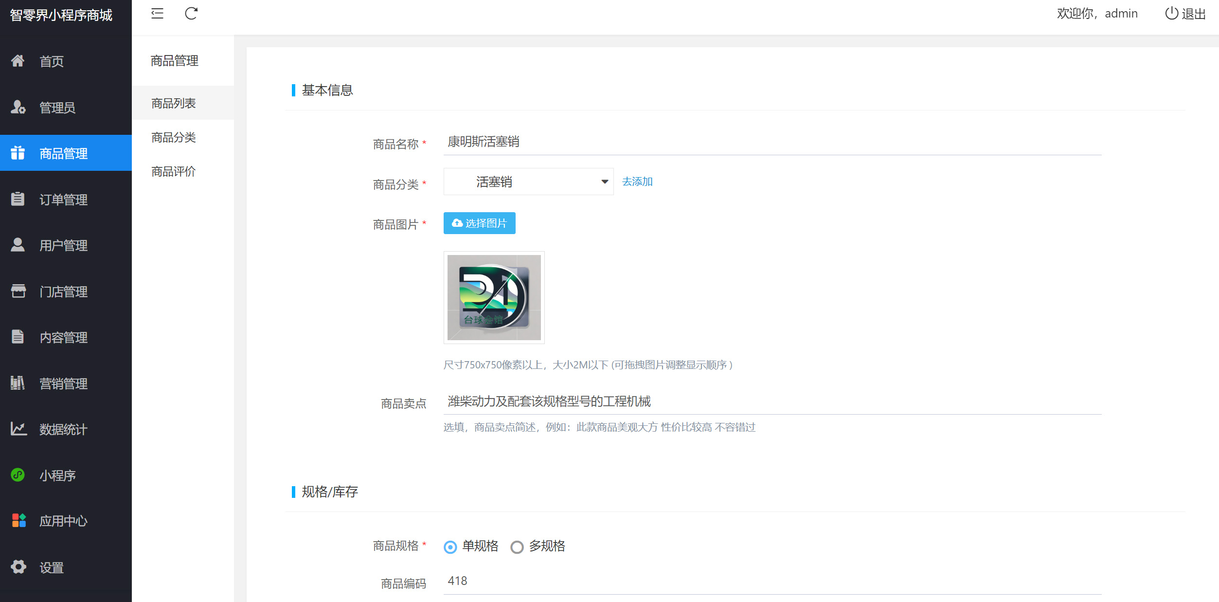 2、商品管理简洁强大,可以分类输入,也可以对商品评价;