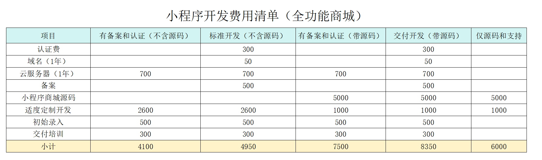 微信小程序-全功能商城搭建预算