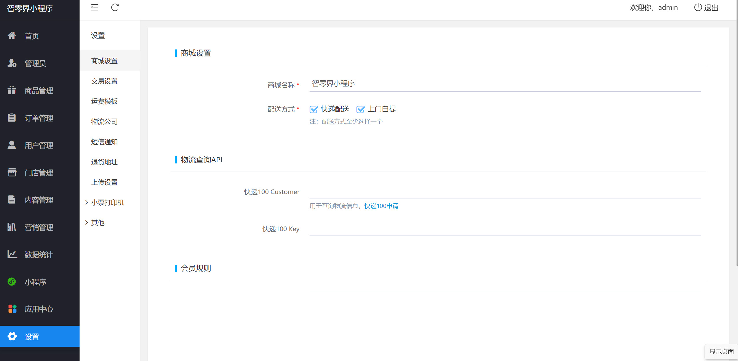 9、面针对商城、交易、运费、物流公司等有相应设置,还有小票打印、