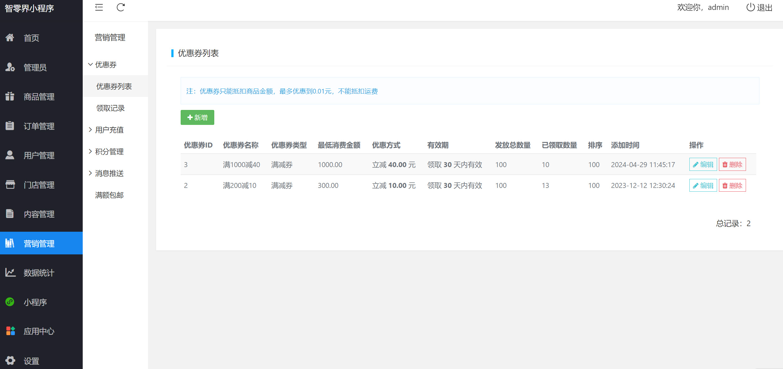 6、营销管理集合了多种促销模式;数据统计清晰明了