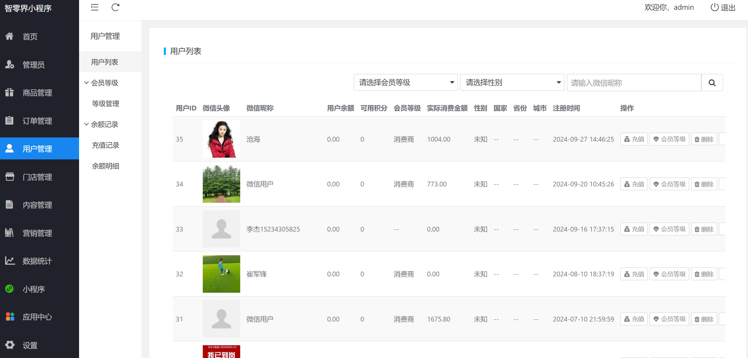 4、会员可以分等级管理,充值和余额清晰明了。