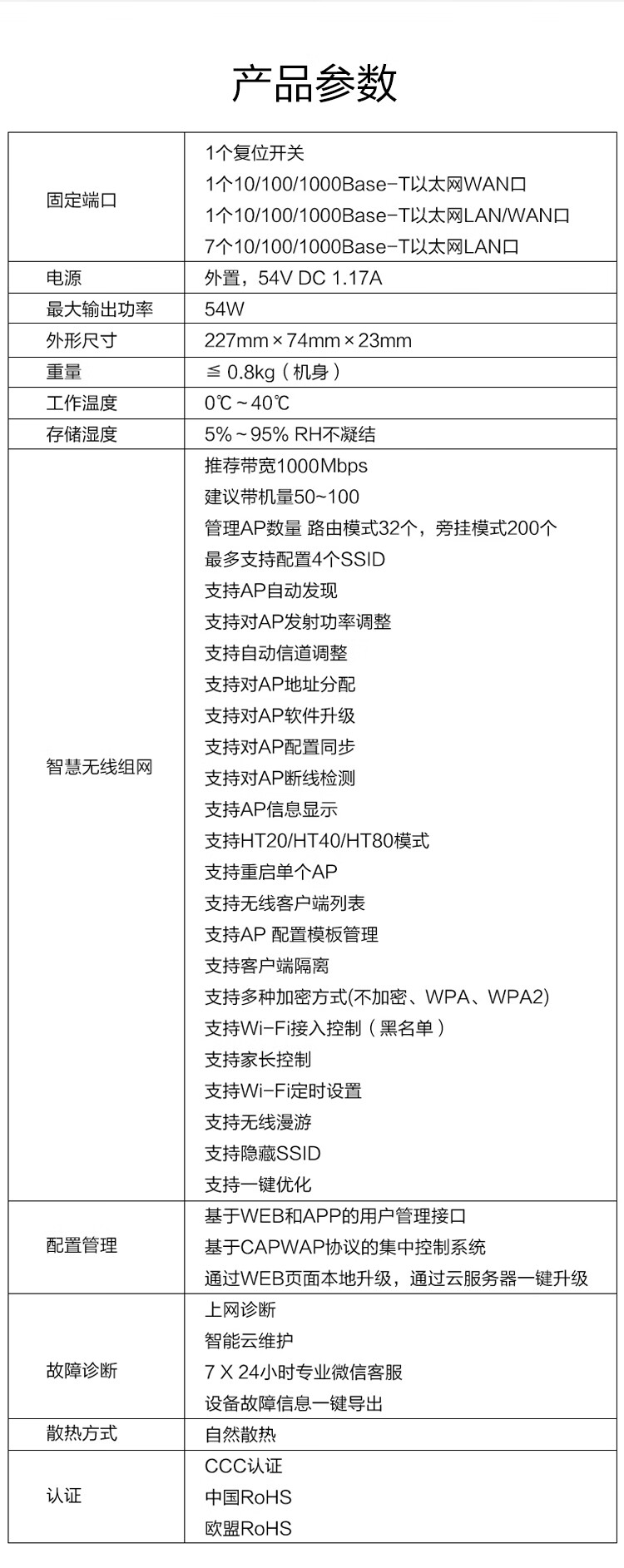 有线传输率:千兆端口