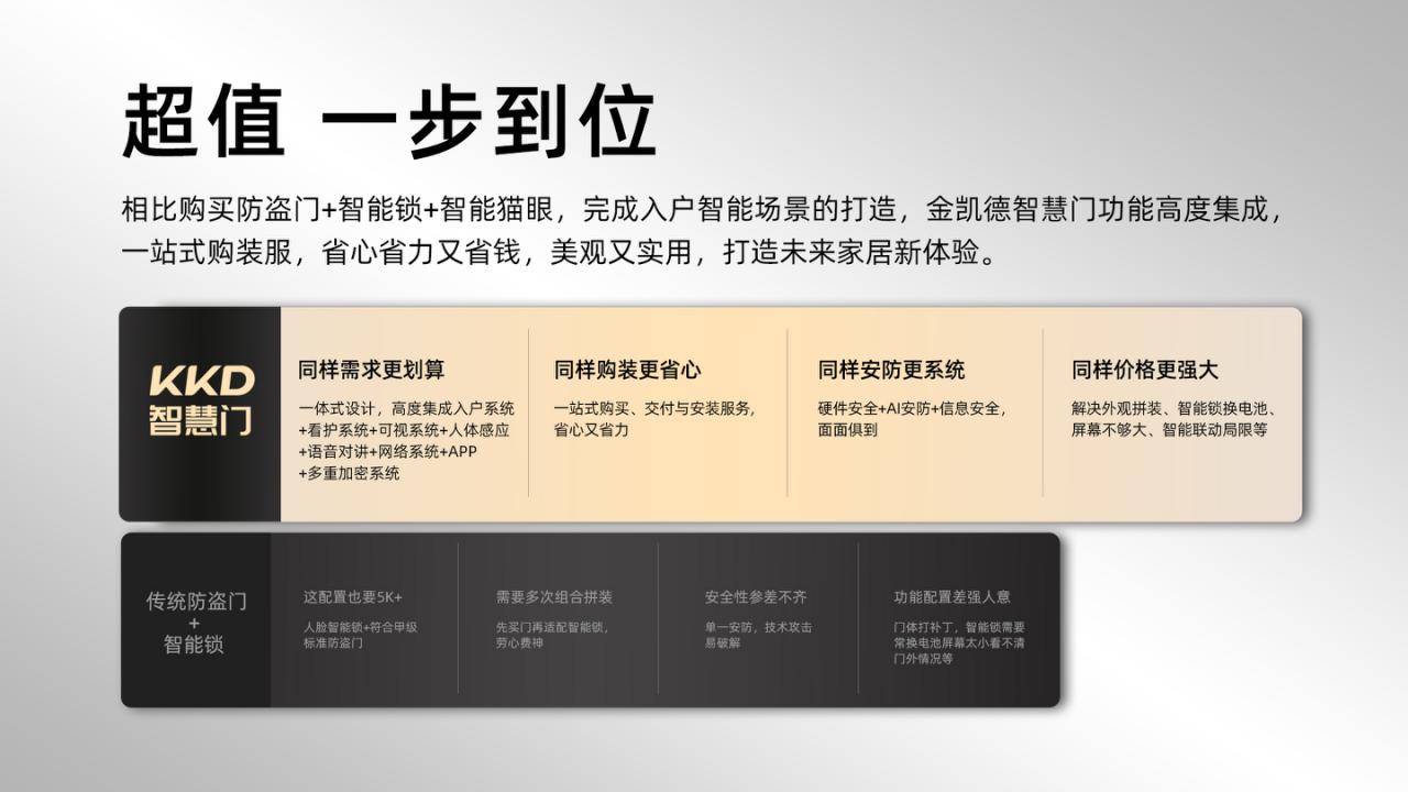 金凯德智慧门作为智能家居的重要组成部分,特别针对家庭的智慧安防角度进行专研与创新,全新升级智慧门的智慧安防系统,特别针对火灾、烟感等消防问题进行主动预防。通过融合声光电气等多种先进技术,融入温度传感器并同时联动智能烟雾传感器,双项协同工作,为家庭的智慧安防构建了一道坚不可摧的安全防线。无论是在日常的火灾预防,还是在老人、小孩等特殊人群的安全保障以及夜间火灾的防范方面,金凯德智慧门都凭借其卓越的性能,真正成为家庭安全的可靠守护者。