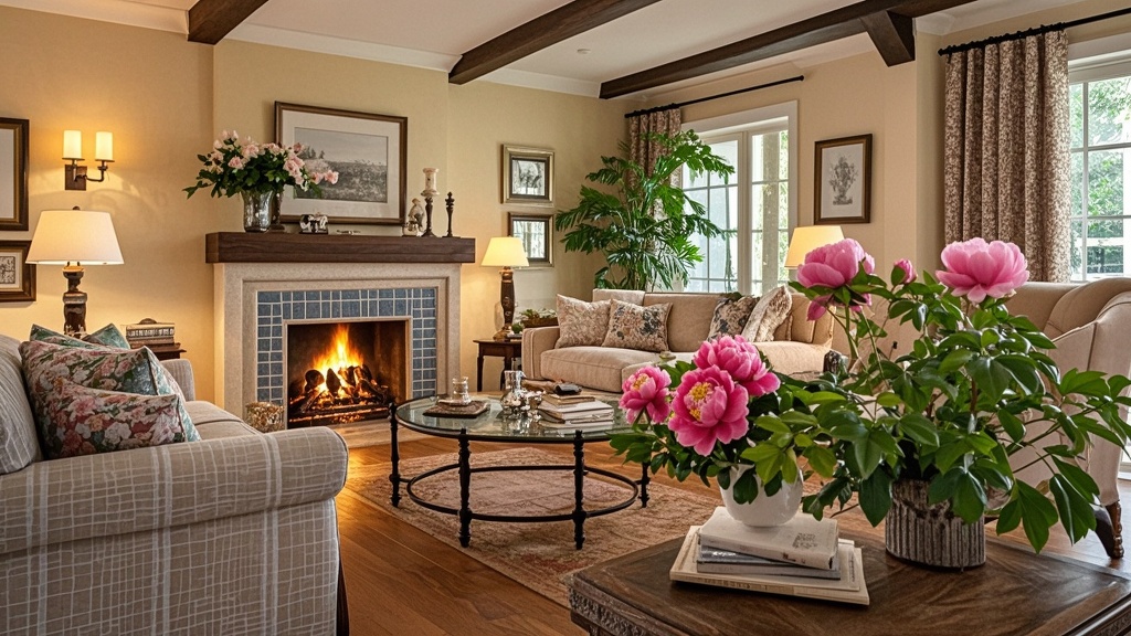 壁炉设计:壁炉是美式风格的重要元素,象征着家庭的温暖和团聚。 装饰画与摆件:墙面常用装饰画、照片等进行点缀,体现主人的品味和爱好。 绿植与鲜花:在室内摆放绿植,增加生气和自然气息。 灯光照明
