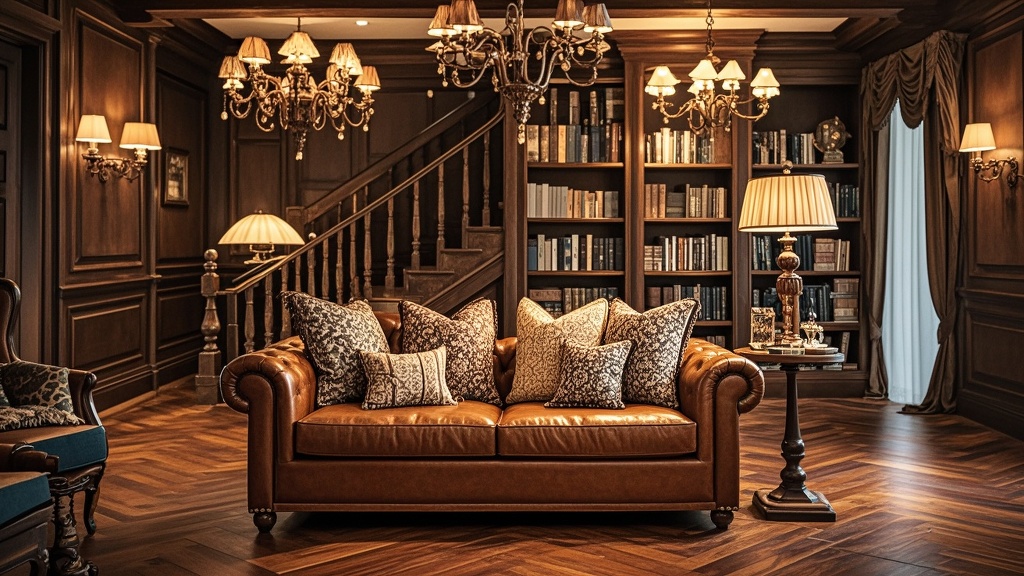 - 色彩搭配: 深色调为主:采用深色木质和浓郁的色彩,营造出沉稳厚重的氛围。