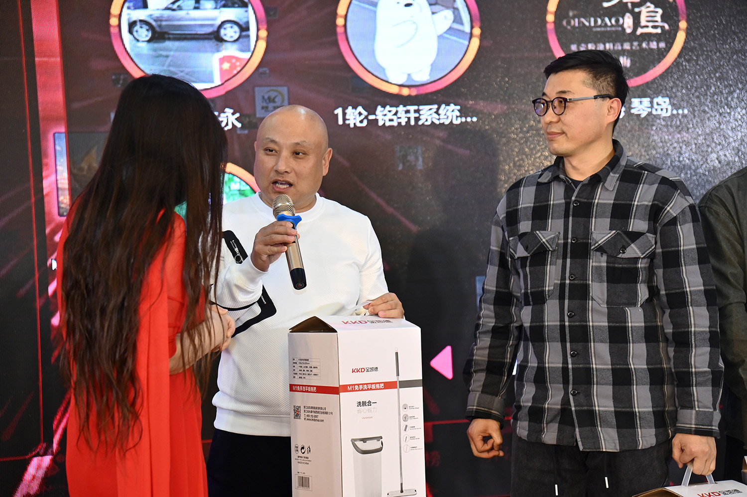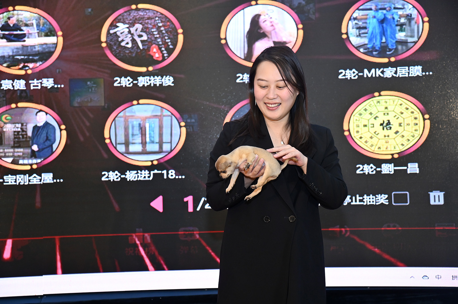 美女主持现场发宠物玩具