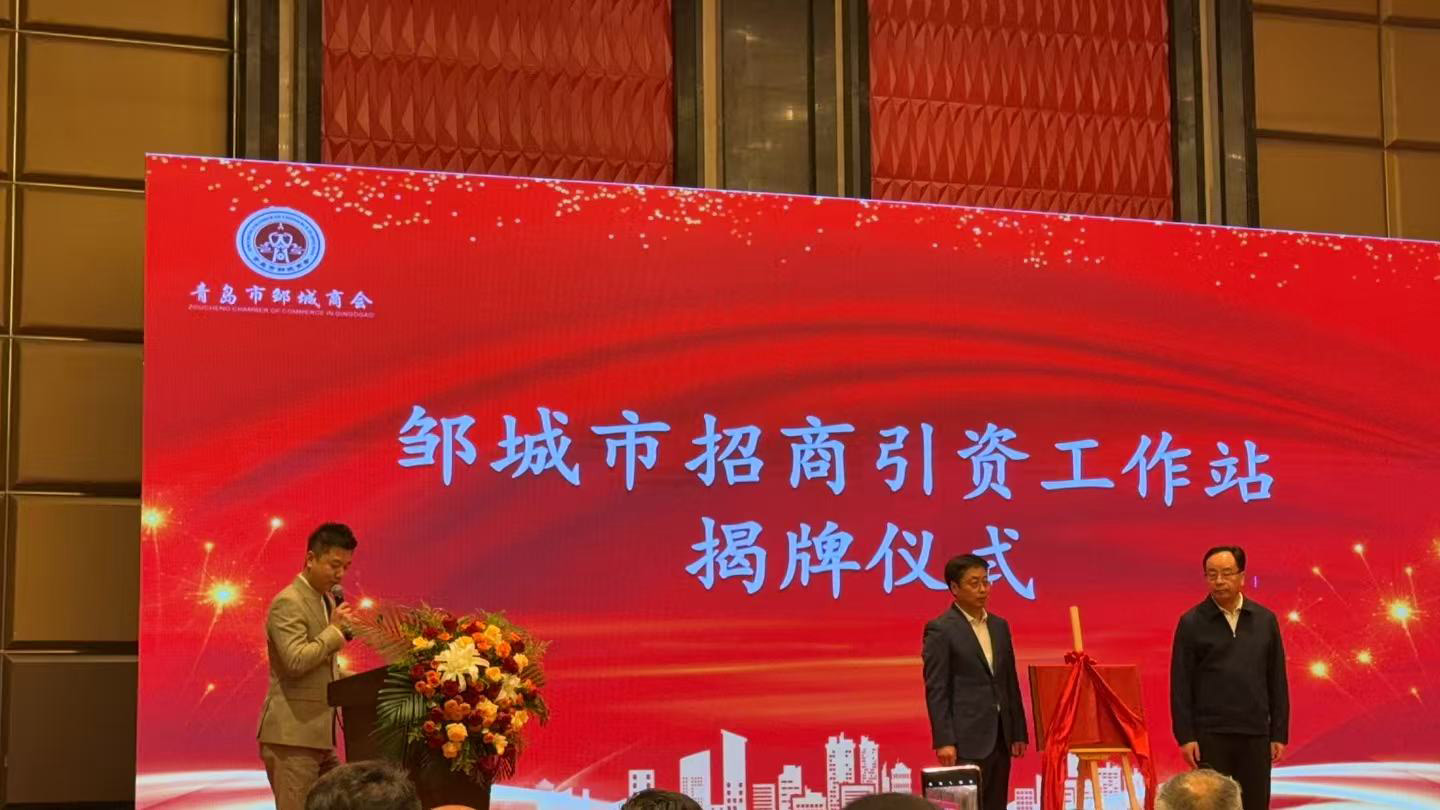 卓克忠副主任与冯涛会长共同为邹城市招商引资工作站揭牌。
