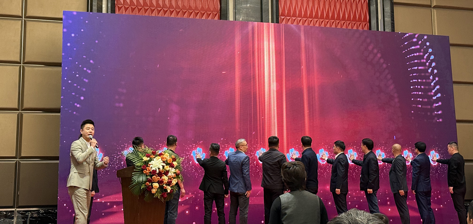 冯涛会长带领副会长和秘书长共同上台敬酒,祝愿商会蓬勃发展,合作共赢。