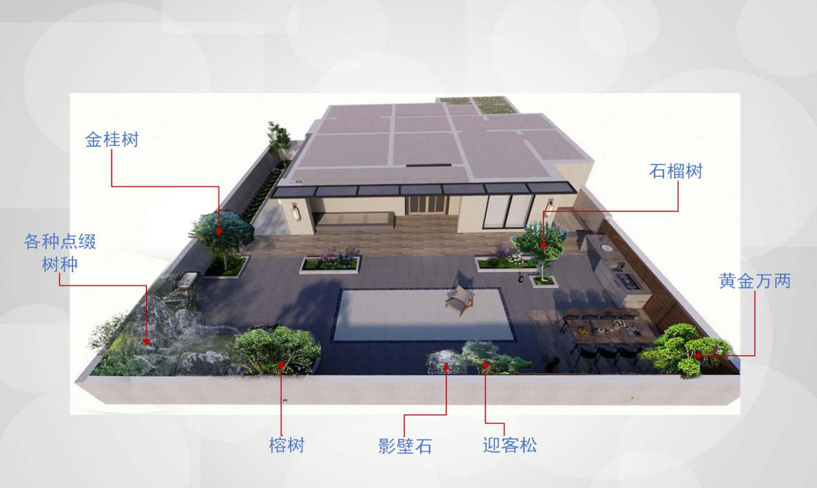 在智慧庭院的景观园林设计中,我们巧妙地融入了中式庭院的文化风格,并结合风水布局理念,打造出一个独具特色且寓意深远的庭院空间。