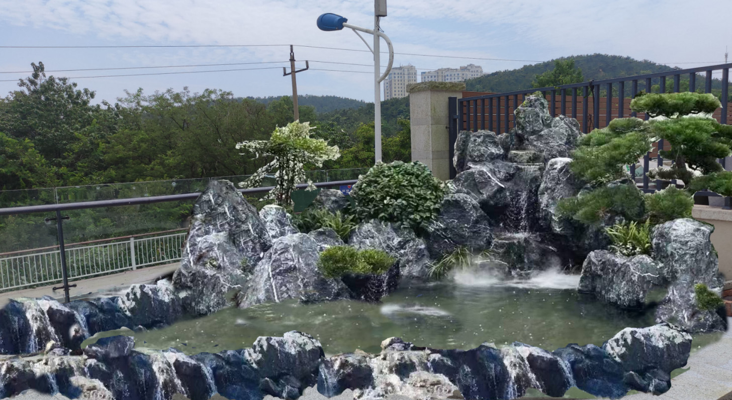 庭院的入口处设置门影壁石,这一设计在中国传统庭院中具有重要意义。它不仅能起到空间隔断的作用,还能避免外界一眼看穿庭院内部,保护庭院的私密性。而影壁石旁边的迎客松,更是中式庭院文化的经典元素。迎客松以其独特的姿态,仿佛在热情欢迎每一位到访者,展现出主人的好客之道。