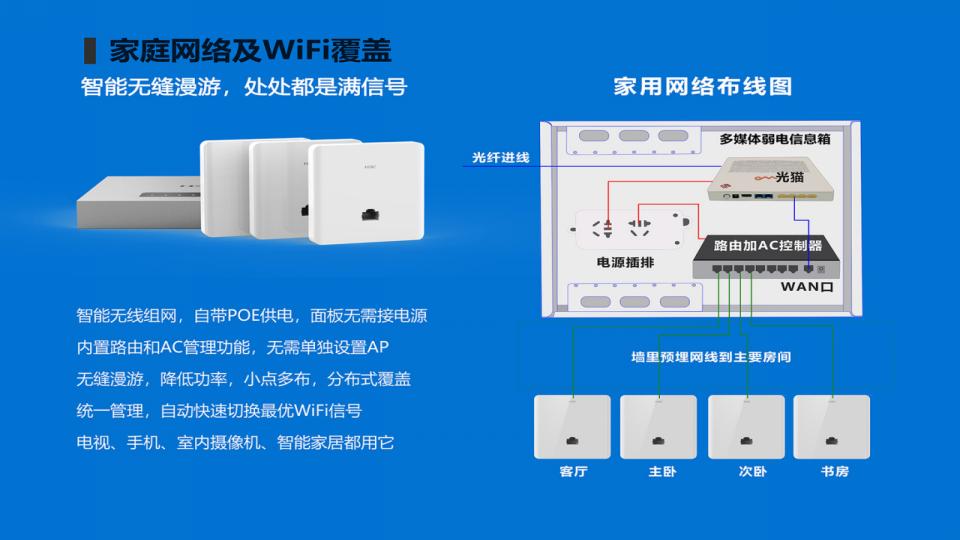 同时,您家的网络,WiFi覆盖、可视对讲、监控、手机信号放大器,我们会一并给你设计好,安装好,这些不挣您的钱,因为这都是我们专业顺带做的,基础弱电对我们来说,那简直小菜一碟。