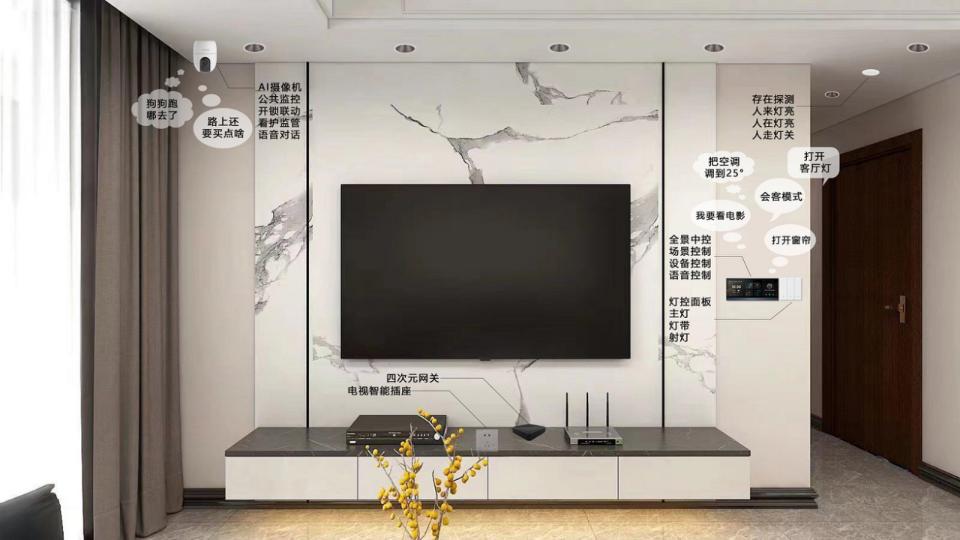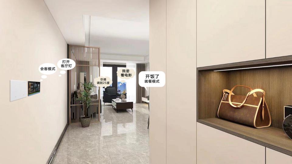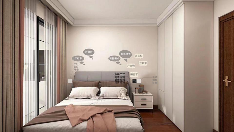 您可以用语音说:打开空调、调到25度,打开布帘,关闭纱帘 ... ...,简直太方便了